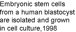 Embryonic stem cells from a human blastocyst are isolated and grown in cell culture,1998